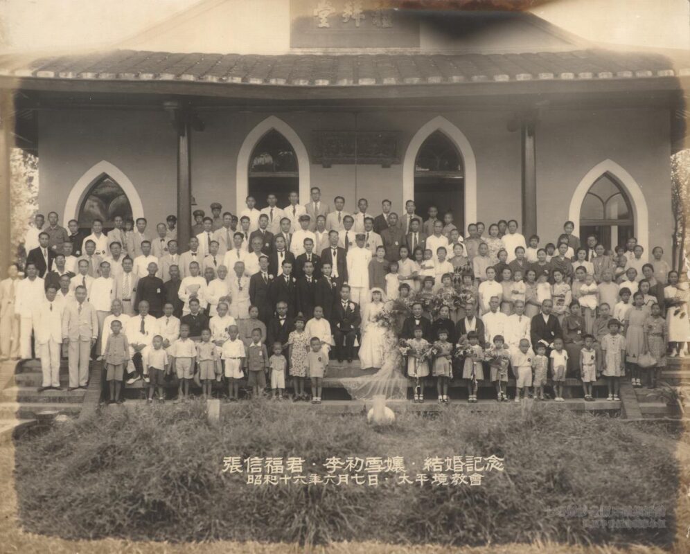 張信福和李初雪,在神的見証之下在太平境教會的婚禮。 太平境基督教會全名為「太平境馬雅各紀念教會」, 為台灣最早的基督教長老會之一。教會所在地為「溝仔底」, 一般台南人又稱「溝仔底教會」。
