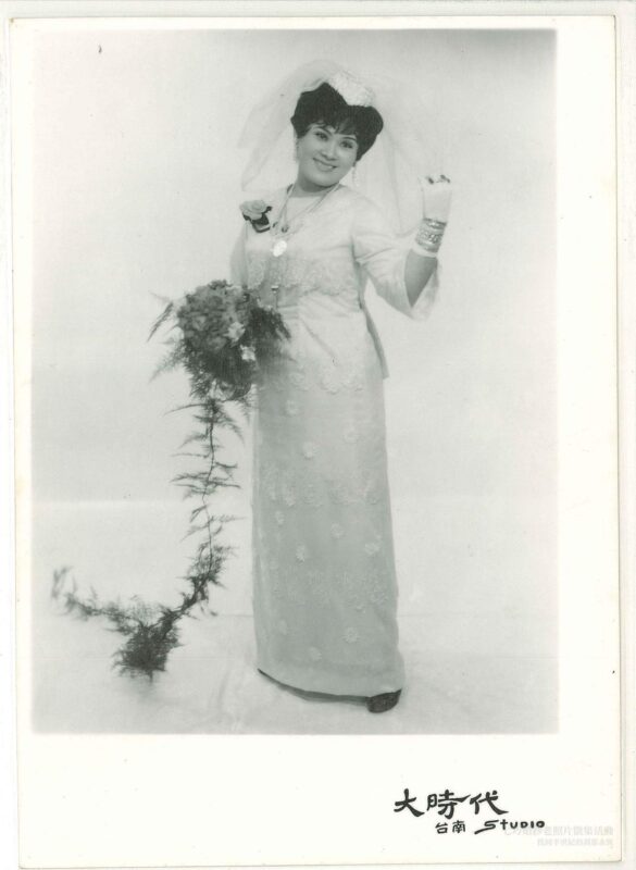 我阿嬤的獨照,是不是很嬌嫩美麗呀~!這是當時最新款的新娘禮服,訂做的獨一無二的喔!